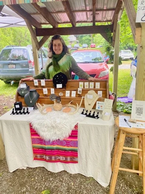 It was seeing my patchwork clothing and appreciating my eye for detail that lead a professional jeweler to hire me to work for him in my early twenties. I learned most of my metalsmithing skills then. My other career is social work, and I’m working on ways to integrate these two loves of mine, art, and social work. I believe the connection has something to do with self-care. I love when people connect with my jewelry on a spiritual/personal level. I hope my jewelry serves as a reminder to you to practice self-care and honor yourself with beauty.