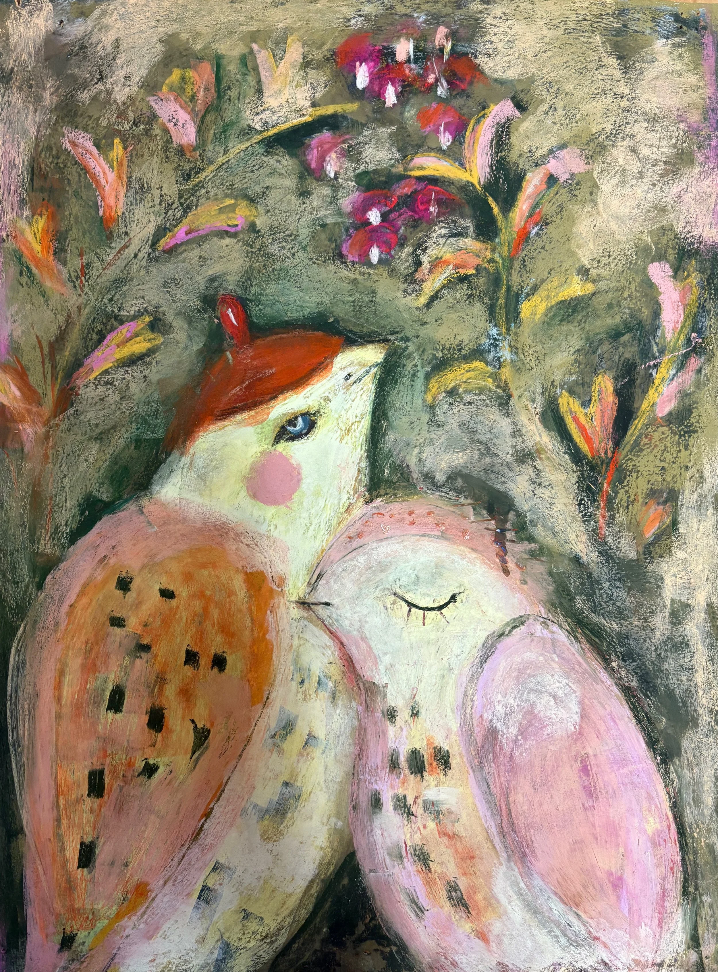 Soft pastel shaped by color, memory, myth, and place. Quiet strength from within creates an invitation to come as you are. Otherness, tenderness, and imperfection honors the beauty of being human.