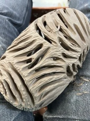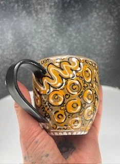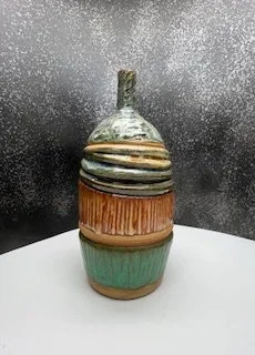 My ceramics offer a sense of coziness while also giving the aesthetic of bulbous shapes and interesting textures. I am a baby potter still, so my work is in its early evolutions and I am excited for the many changes and discoveries I have yet to make both in the art form itself, and in the community that surrounds it.