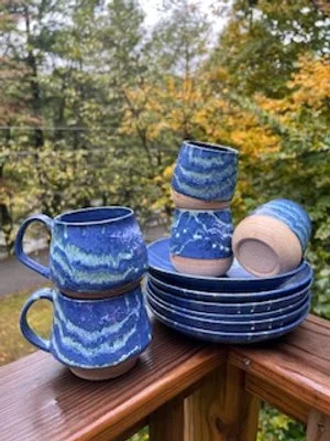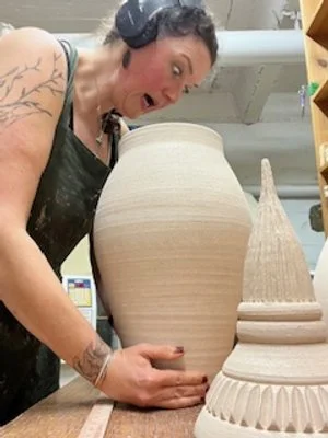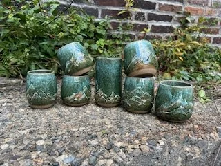 My name is Michelle McCaffrey. I was born and raised in northeastern New Jersey and moved up to Vermont almost 10 years ago . I have always been a creative, dabbling in drawing, painting, knitting, dyeing yarns and fabrics, gardening, sculpture… anything I could get my hands on really, and anything that let me turn something into something else. I have always loved hand made ceramics and the energy and creative fingerprint each piece carries. In march of 2024 I took my first ceramics class since high school and I’ve barely left the studio since. The tactile nature of clay and pottery and all the different applications and creative outlets this one medium can be used for make my brain tingle with possibilities! I like the utilitarian creativity that bowls and mugs and plates and the like have to offer. The everyday things we all use, sometimes without thought, have the potential to be little bits of art that we intentionally select to be the vessels for the things that sustain us. Meals, a hot beverage or warming bowl of soup on a cold day… all chances to be a little something special because its held in a vessel that was made with love and the intention to create and make something beautiful.