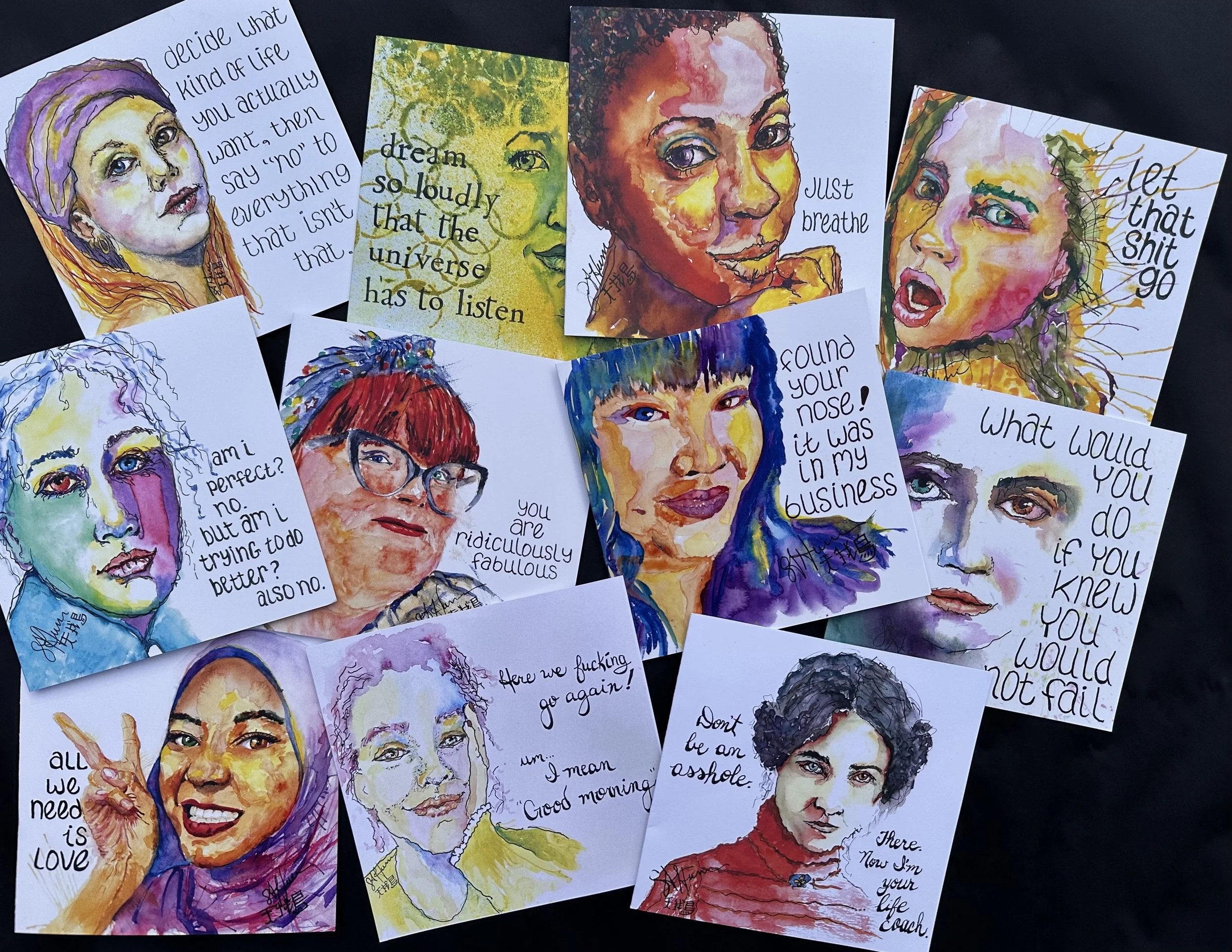 In addition to original paintings, reproductions of her artworks are available at Harmony Collective on Calendars, Note Cards, Photo Tiles and in Themed Gift Boxes.