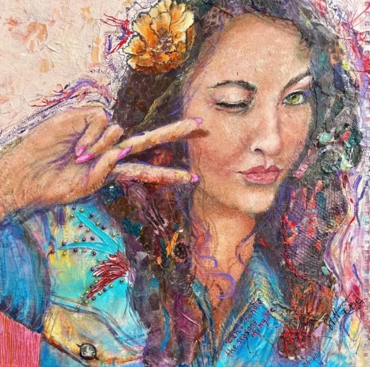 Sue Ann Hum (b. 1951) The artist is a self-proclaimed old hippy chick whose work focuses on a decidedly female, human experience. A prolific painter, Sue Ann offers her authentic voice and bold experimentation as the through lines of her art.