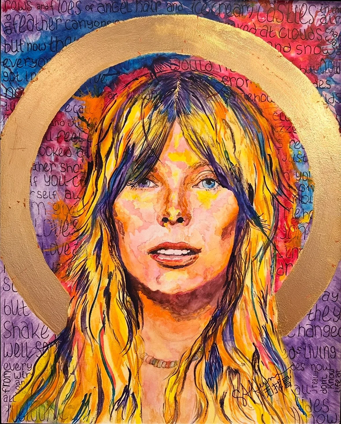Sue Ann’s paintings are unapologetically evocative, revealing her wit and heart through watercolors, acrylics, oils, papers, and even 23K gold.